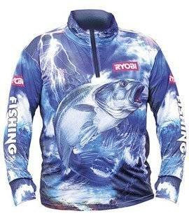 (4)W ofercie odzieży wędkarskiej Ryobi znajdziemy bluzy wędkarskie z tematycznym nadrukiem. Wykonano je z przyjemnego w bezpośrednim kontakcie z ciałem materiału. Dodatkowo materiał użyty do ich wykonania zapewnia ochronę przed promieniami UV, co niewątpliwie okaże się przydatne w upalne dni. Bluzy te posiadają ponadto doskonałe właściwości oddychające. Firma oferuje również dwa typy nakryć głowy. Czapki typu baseball oraz czapki typu wojskowego, popularne patrolówki.