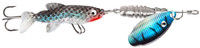 Skuteczna błystka obrotowa Jaxon Holo Reflex Rotus Minnow, z wydłużonym skrzydełkiem i dodatkową rybką wykonaną z miękkiego tworzywa.