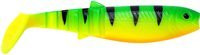 Tym, co decyduje o skuteczności tej przynęty, jest przede wszystkim jego akcja. Savage Gear Cannibal Shad posiada dość masywny, realistyczny korpus z zaznaczonymi płetwami oraz. Realizmu przynęcie dodają także oczy. Tylną część korpusu tej gumy została specjalnie odchudzona i zakończona ogonem typu Paddle Tail (popularne kopyto).